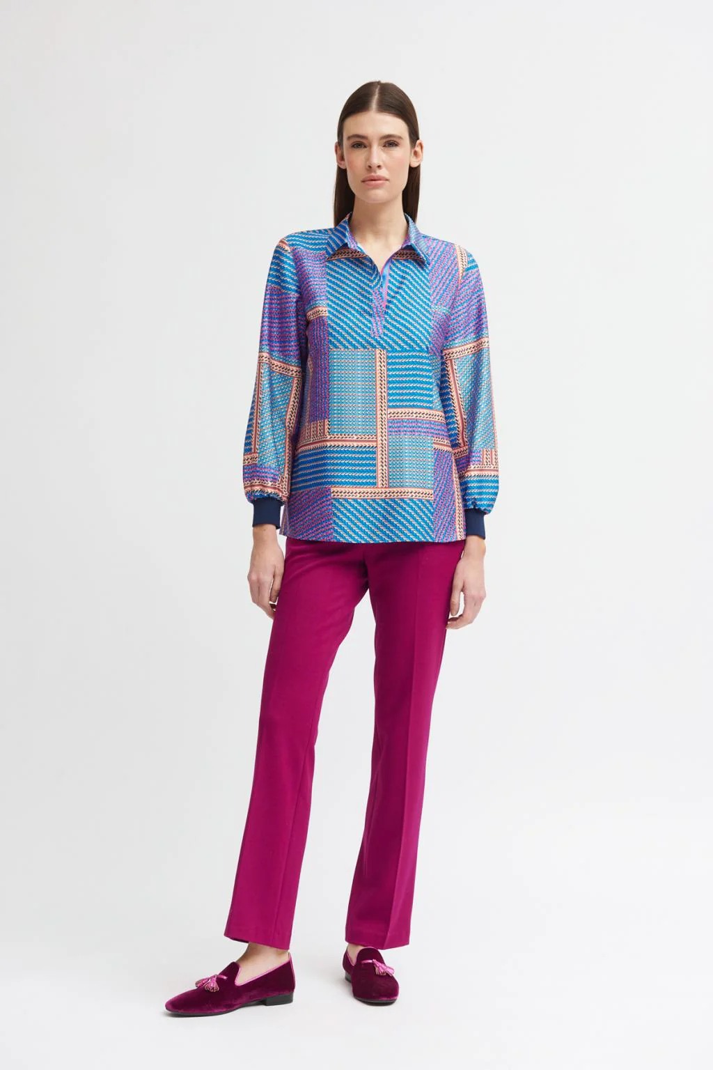 Tinta εμπριμέ σατινέ μπλούζα με γιακά