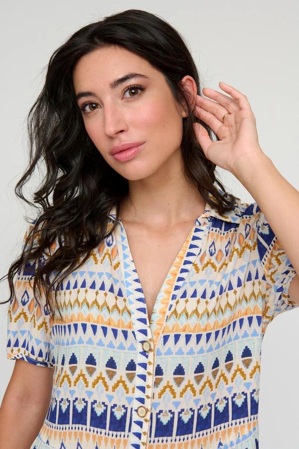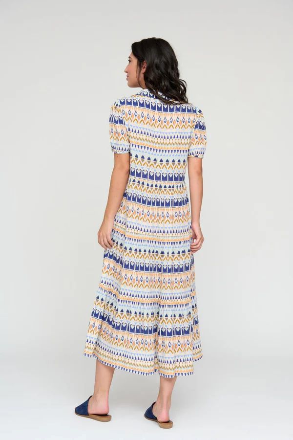 Tinta βαμβακερό εμπριμέ μίντι φόρεμα με γιακά