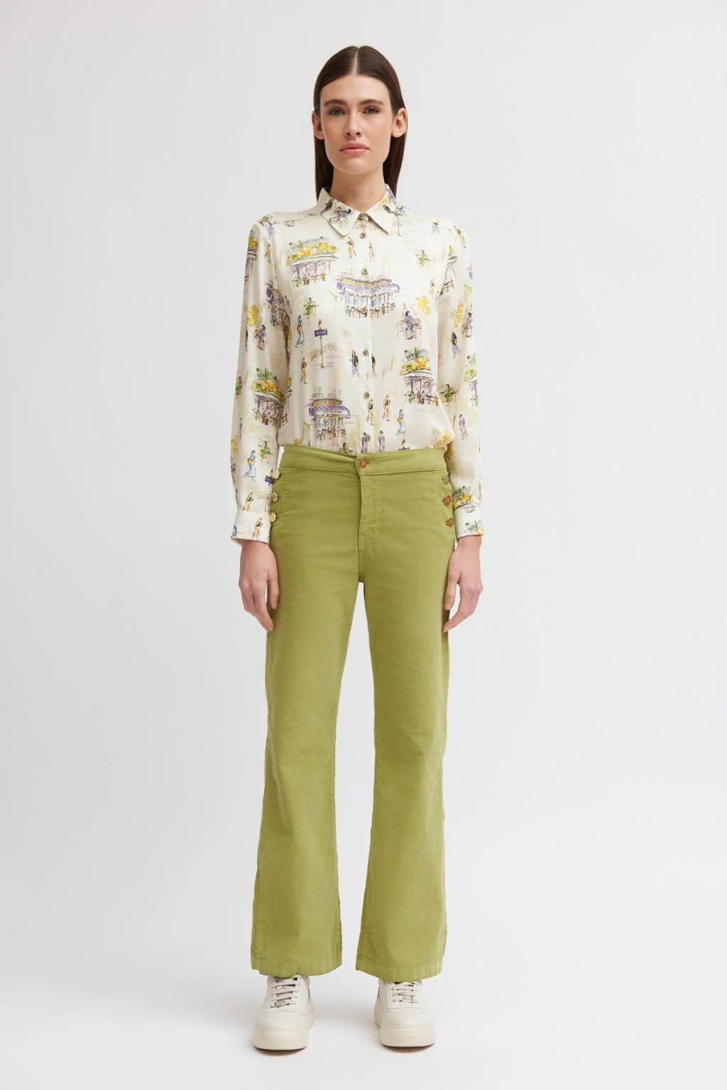 Βαμβακερό ελαστικό κοτλέ παντελόνι με τσέπες