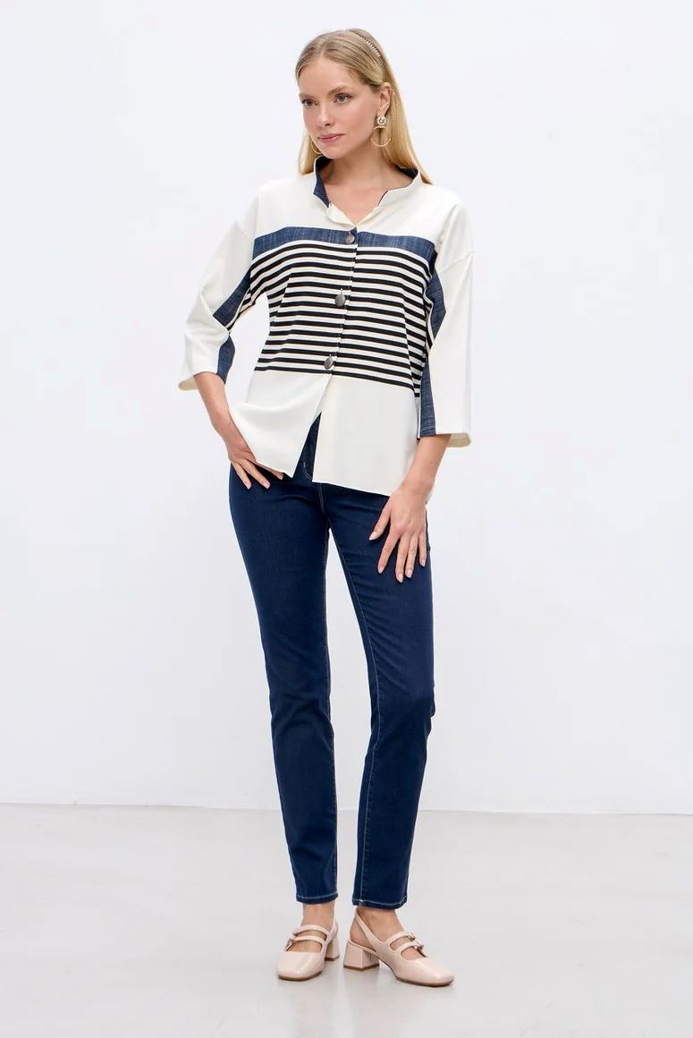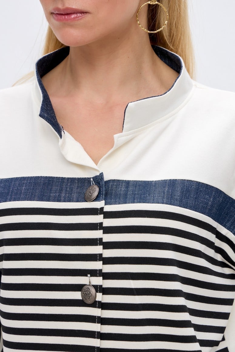 Βισκόζ ζακέτα με ρίγες εμπρός και φάσα από ύφασμα τζην